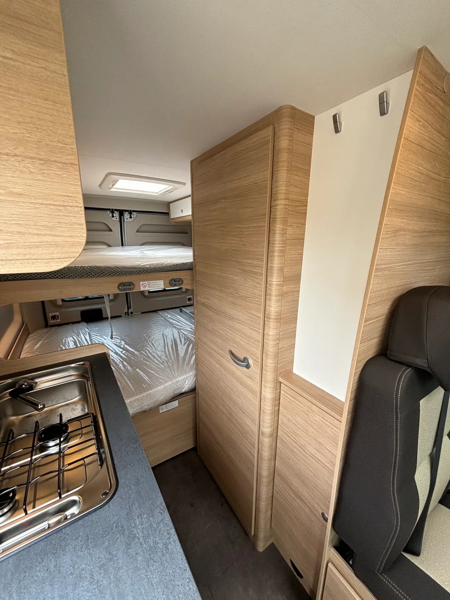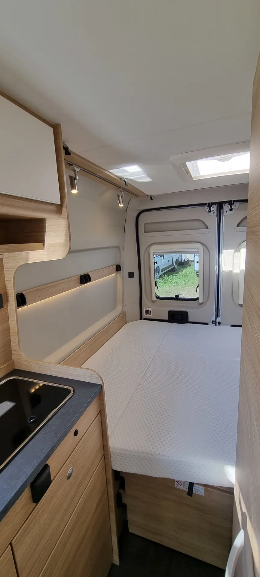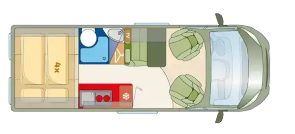 Con sus literas traseras desmontables, la Roadcar R601 se adapta a tu estilo de viaje: puedes usarla como vehículo para dos y ganar espacio o habilitarla para dormir cuatro cómodamente. Incluye cocina con 2 fuegos, nevera con congelador, fregadero, baño completo con ducha y agua caliente, así como calefacción estacionaria. La batería auxiliar y la placa solar te permitirán acampar libremente sin preocupaciones.